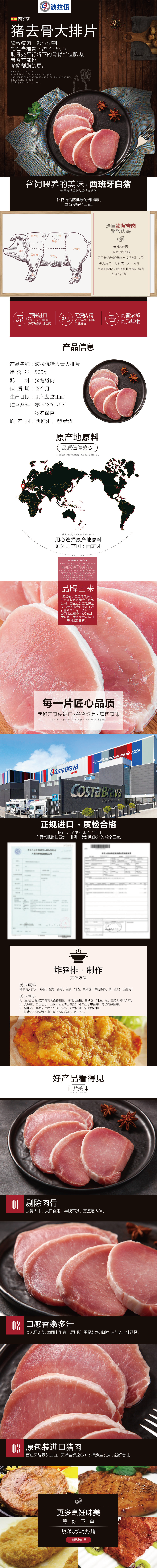 產(chǎn)品介紹:西班牙波拉佤豬去骨大排片——西班牙原包裝進(jìn)口,精選豬龍骨部位,精細(xì)加工,口感新鮮,有嚼勁。 工藝:原切 規(guī)格(g):500g 箱規(guī):10袋/箱