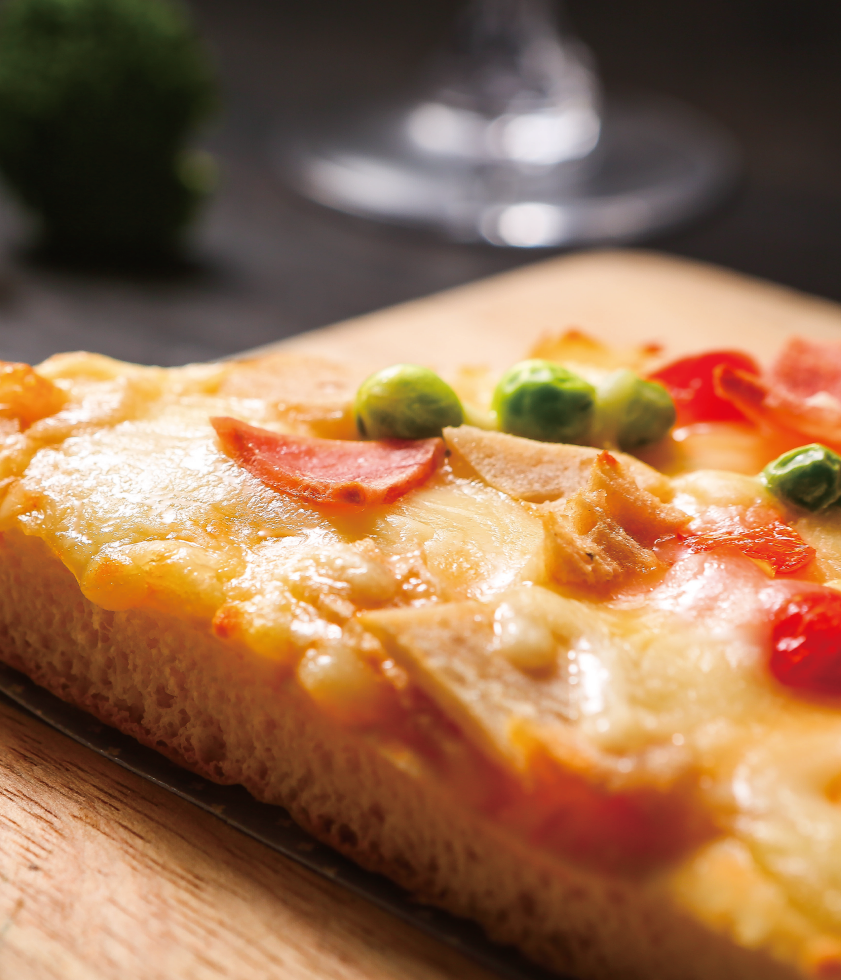 產(chǎn)品介紹:肉香滿溢匹薩——肉食主義者的心頭好!火腿、午餐肉,搭配青豆、洋蔥、紅椒、玉米,佐以酸甜可口的番茄醬,和奶香濃郁的芝士,無肉不歡,十足享受。