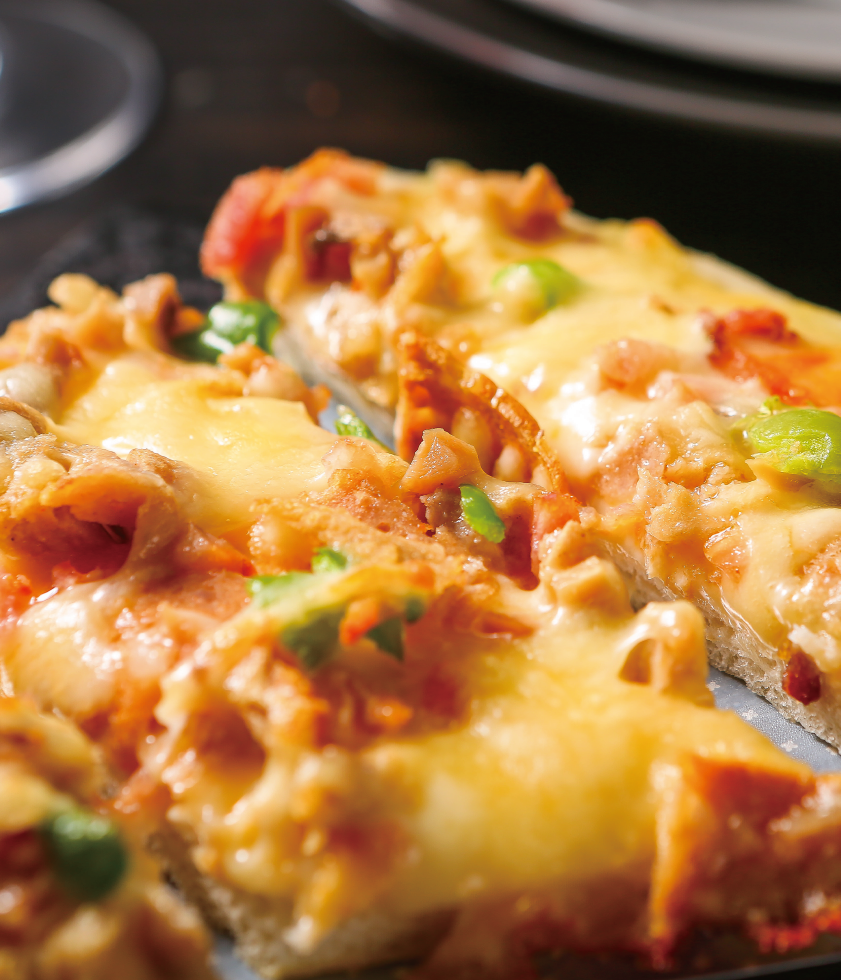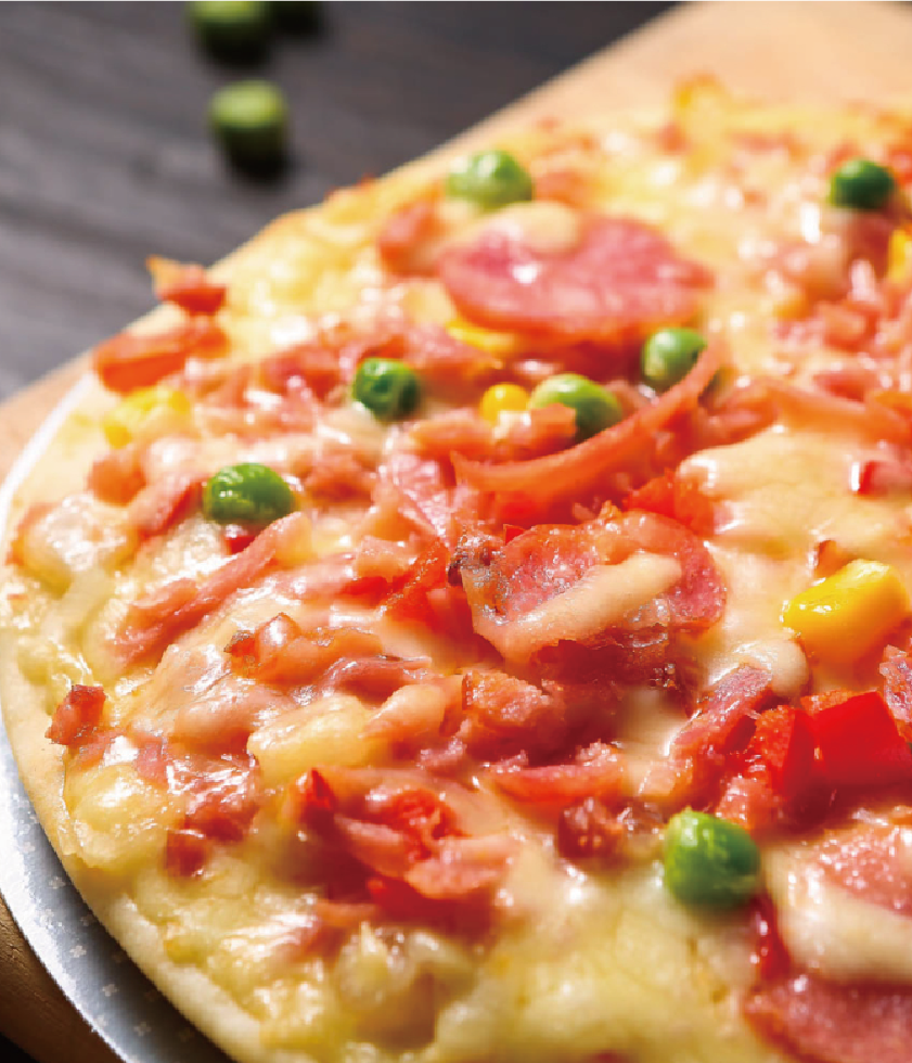 產(chǎn)品介紹:香葷乳酪匹薩——火腿、臘腸、培根,看著就叫人口中生津,搭配青豆、洋蔥、紅椒、玉米,佐以酸甜可口的番茄醬,奶香濃郁的芝士,和精心調(diào)配的香料,咬下去滿(mǎn)口肉香。