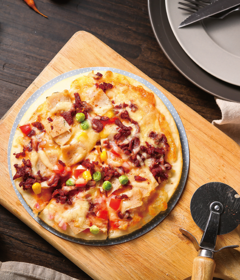 產(chǎn)品介紹:美式烤肉匹薩——燒烤與匹薩的完美結(jié)合,充滿美式風情的烤肉,搭配午餐肉、青豆、洋蔥、玉米、紅椒,佐以酸甜可口的番茄醬,奶香濃郁的芝士,一邊品嘗美式美食,一邊聊著美式幽默,把鴨梨神馬的統(tǒng)統(tǒng)拋到九霄云外。 工藝:半制成品 規(guī)格(g):180g 包裝規(guī)格:1片/盒 箱規(guī):30盒/箱
