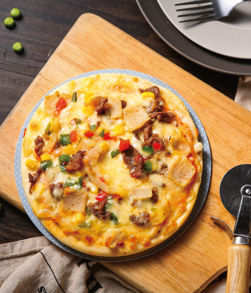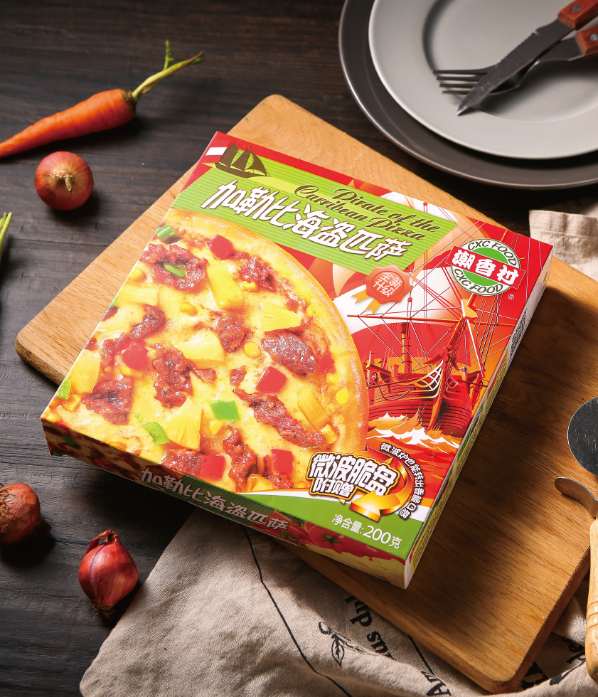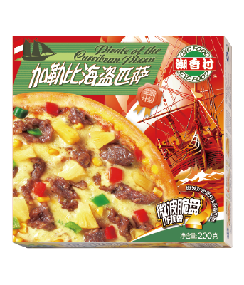 產品介紹:加勒比海盜匹薩——獨特的加勒比風味牛肉,經由迷人的混合香料腌漬,是加勒比海地區最為知名的風味美食之一,搭配色彩艷麗的午餐肉、菠蘿、玉米、青椒、紅椒,在番茄醬和芝士的混合中,透露出難以抵擋的南美風情。